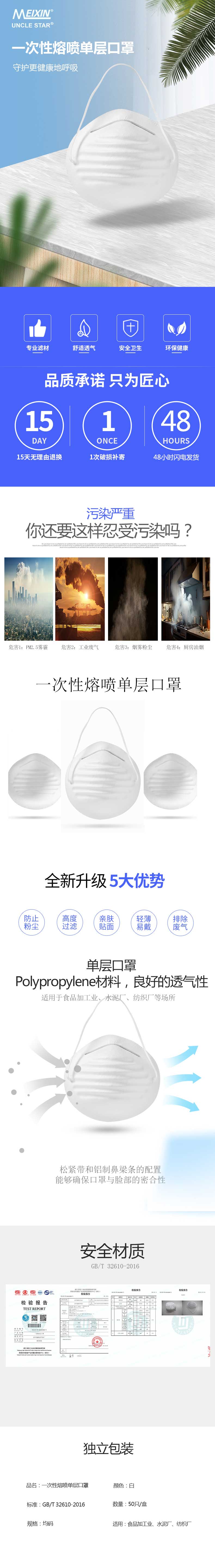 Disposable melt blown single-layer mask MX-007