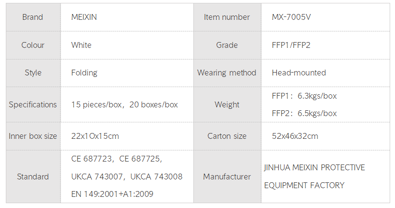 MEIXIN Mask(Breathing valve) FFP1/FFP2 MX-7005V