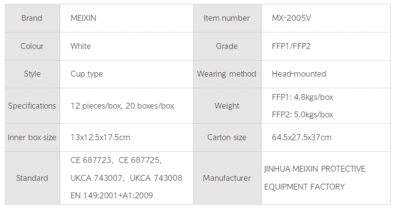 MEIXIN Mask(Breathing valve)FFP1/FFP2 MX-2005V