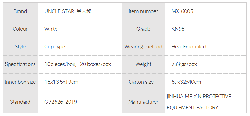 UNCLE STAR 星大叔 KN95 Mask MX-6005