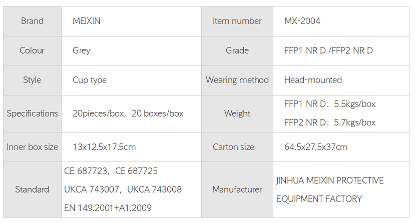 MEIXIN Mask(Activa carbon)FFP1 NR D/FFP2 NR D MX-2004