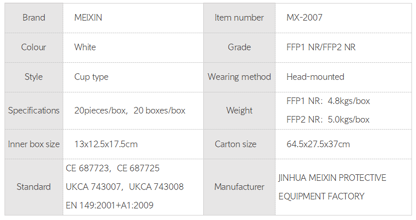 MEIXIN Mask FFP1 NR / FFP2 NR MX-2007