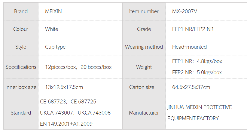 MEIXIN Mask(Breathing valve)FFP1 NR / FFP2 NR MX-2007V